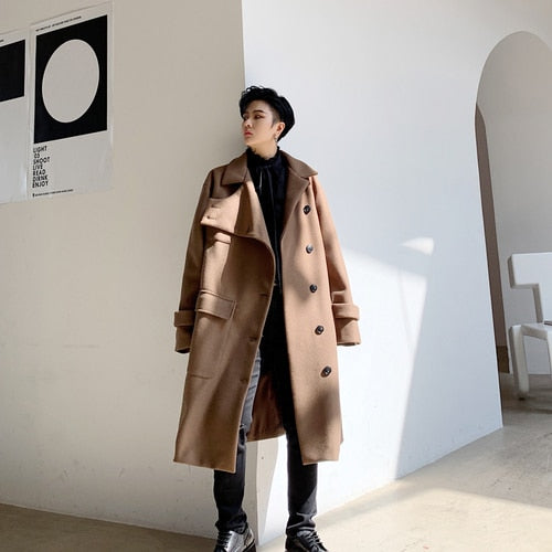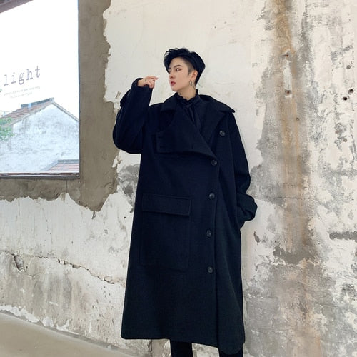 YASUGUOJI Fashion Irregularity Length Single Breasted Mens Coat Winter Long Coat Men Designer Mens Woolen Coat Abrigo Hombre